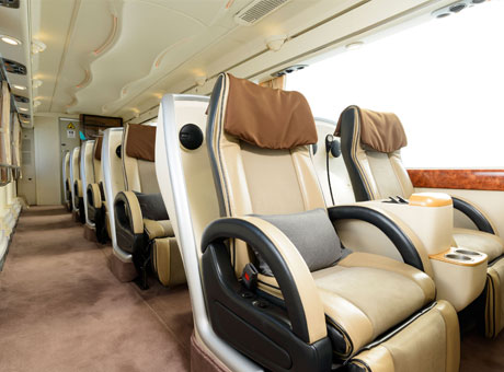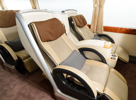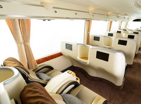 至福の時を演出する贅沢で優雅な移動空間。従来のバスにはないワンランク上の車内装備。