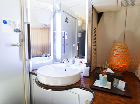 長距離移動も安心なパウダールーム兼化粧室を完備。