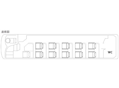 乗車定員/18人 装備/テーブル、3点式シートベルト、バーカウンター、トイレ、洗面スペース |