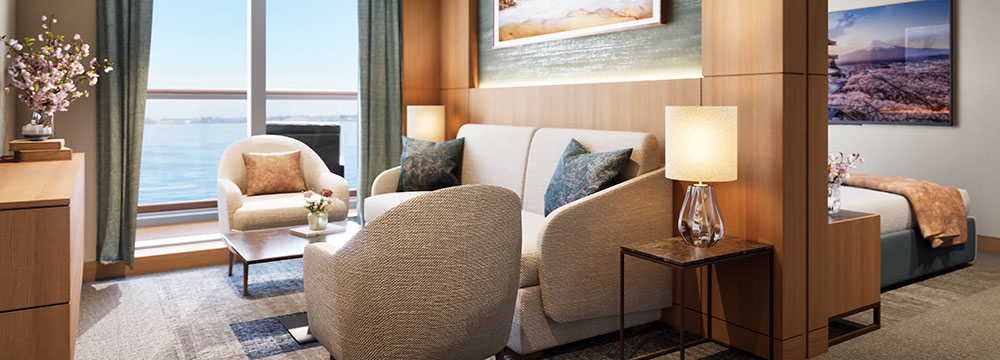 郵船クルーズこれぞ世界に誇る新たな日本の客船。全室バルコニー付き、6つのダイニングなど、お一人おひとりに“最幸の時間”を。