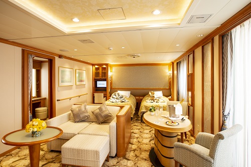 にっぽん丸は「大人のための豊かな国」をテーマに、美食、おもてなし、愉しみを追及した楽しい海の上の暮らしを提案します。メインダイニングに加え、空に向かって眺めが広がる「プレミアムダイニング」と洋上の「寿司バー」、また、スイートルームの専任バトラーサービスや、世界的高級ブランド「TERRAKE」のスパ&サロンなど、極上の空間が待っています。