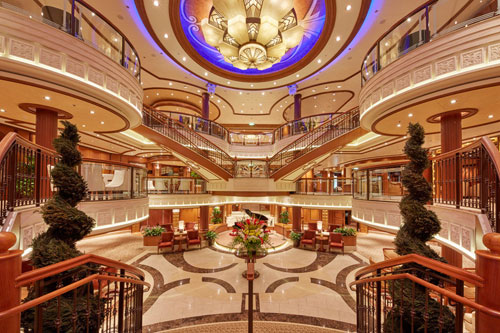 歴史を継承するだけでなく、先代とは異なる新時代の女王船として、進化した独自の船内設備を擁します。グランド・ロビーの一角には、エリザベス女王の肖像画が飾られています。
