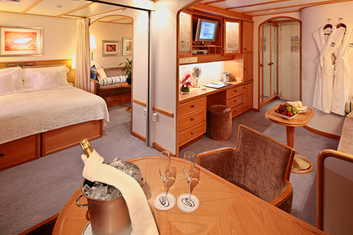 乗客112人:クルー95人だからこそ実現するこだわりのサービスが魅力。あたかも豪華プライベートヨットのオーナーであるかのように、いままで体験したことのない、最高の洋上バカンスをお楽しみいただくことができます。