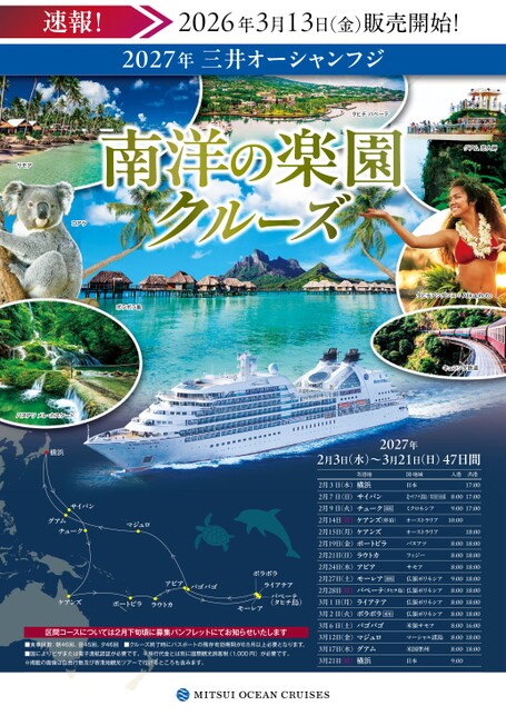 - 三井オーシャンフジ 南洋の楽園クルーズ 47日間<2027年2月3日出発>