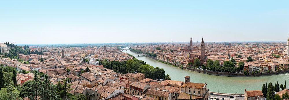 イタリアオペラの頂点スカラ座を抱えるミラノの東約130kmに位置する古都ヴェローナ。一帯はドロミティ・アルプスの裾野にあり、ローマ時代から避暑地、保養地として開けてきました。