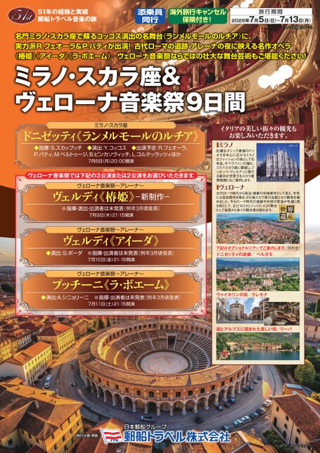 ミラノ・スカラ座&ヴェローナ音楽祭 9日間<2026年7月5出発>
