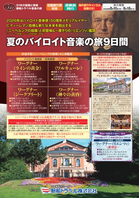 夏のバイロイト音楽の旅<2026年8月10日出発>