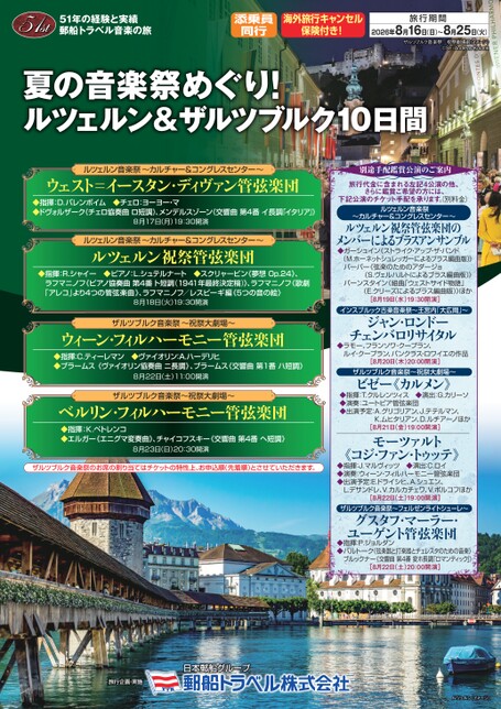- 夏の音楽祭めぐり! ルツェルン&ザルツブルク 10日間<2026年8月16日出発>
