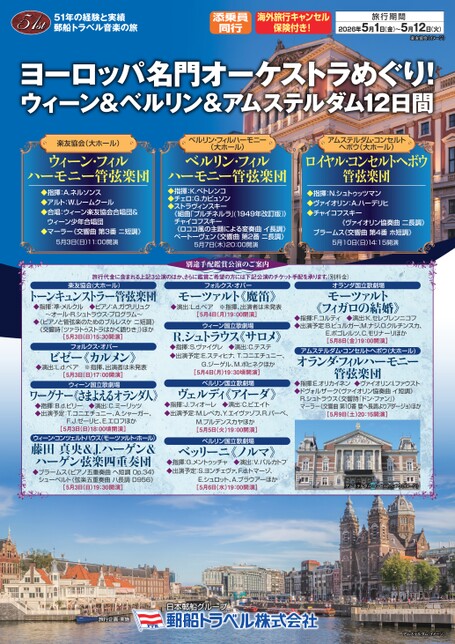 ヨーロッパ名門オーケストラめぐり!ウィーン&ベルリン&アムステルダム12日間<2026年5月1日出発>